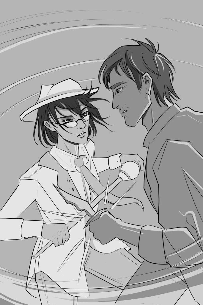 Mahnoor later estimated that roughly a second passed between this statement and the Dagger’s first strike. She placed her preemptive defense at about 0.7 seconds, but according to the logs of her jailbroken codex, it was closer to 0.9. To me, that meant very little, but to Mahnoor, it was too close for comfort. It had been time enough to expand her Fleur de Lis field, already in a semi-active state out of caution, to fill the room and transmit a brief analysis of angles, chemical composition, and air pressure to her visual cortex. Minute changes in the Dagger’s angular momentum indicated he was about to launch himself forward.