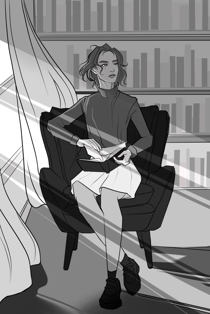 I found Miss Kingstone in the sitting room, reading in her favorite armchair. A dainty hand glided across the page, sometimes returning to an earlier point to re-read a section, but always moving ahead once she had found what she was looking for. Perhaps the epitome of “looks can be deceiving,” she appeared helpless and gentle, dressed in a black turtleneck sweater and—true to her Scottish roots—a tartan skirt over black tights and perfectly polished Mary Jane shoes. Her lithe frame was postured so as to give the impression that she was relaxed, in that way one does when sitting for a portrait. Maybe it was just because she was expecting me, but I couldn’t help entertaining the idea that she never really relaxed. Though she didn’t react to my presence, I knew that she knew I was there.
